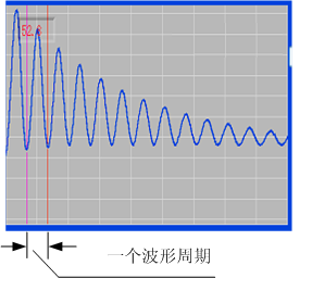 下圖就是對(duì)某一條故障電纜進(jìn)行沖閃測(cè)試得到的波形,沖閃波形上沒有絕對(duì)的電纜始端,從波形的宏觀周期上面找到一個(gè)完整的周期,測(cè)量一個(gè)周期的距離就是電纜的故障長度D。