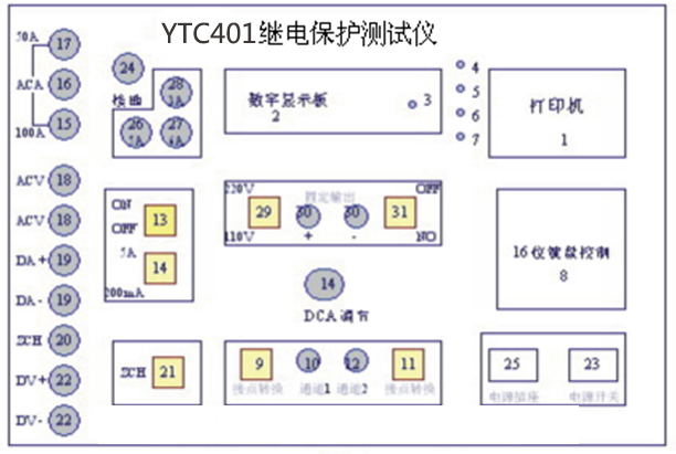 微機繼電保護測試儀是專業(yè)用于電力工作中的電力設(shè)備,是繼保工作者的好助手。儀天成電力設(shè)備有限公司的YTC401微機繼電保護測試儀正是擁有體積小,重量輕才成為了繼保工作者的首要選擇。YTC401單相繼電保護測試儀采用單片微機技術(shù),由自動同期數(shù)字毫秒表,邏輯控制單元,多功能數(shù)顯單元,高精度數(shù)據(jù)采集及處理單元,電流、電壓輸出單元,過載及超量程保護單元等部分組成,自帶打印及顯示,測試過程全自動,大大提高測量精度及工作效率。本文就YTC401微機繼電保護測試儀的面板以及菜單詳情做以下的講解。