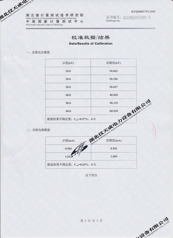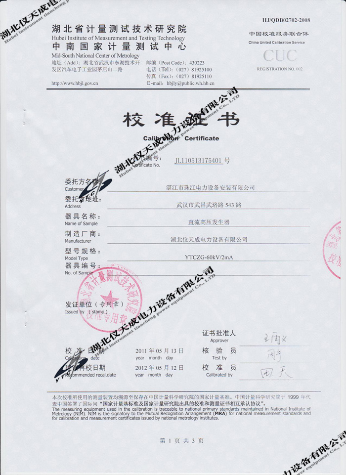 轉(zhuǎn)載:"YTCZG-60kV/2mA直流高壓發(fā)生器的資質(zhì)證書" 請(qǐng)注明來(lái)源于儀天成電力。 更多技術(shù)問(wèn)題請(qǐng)致電儀天成電力客戶服務(wù):027-87876585,技術(shù)部專線:027-87876585,在線客服:719388481